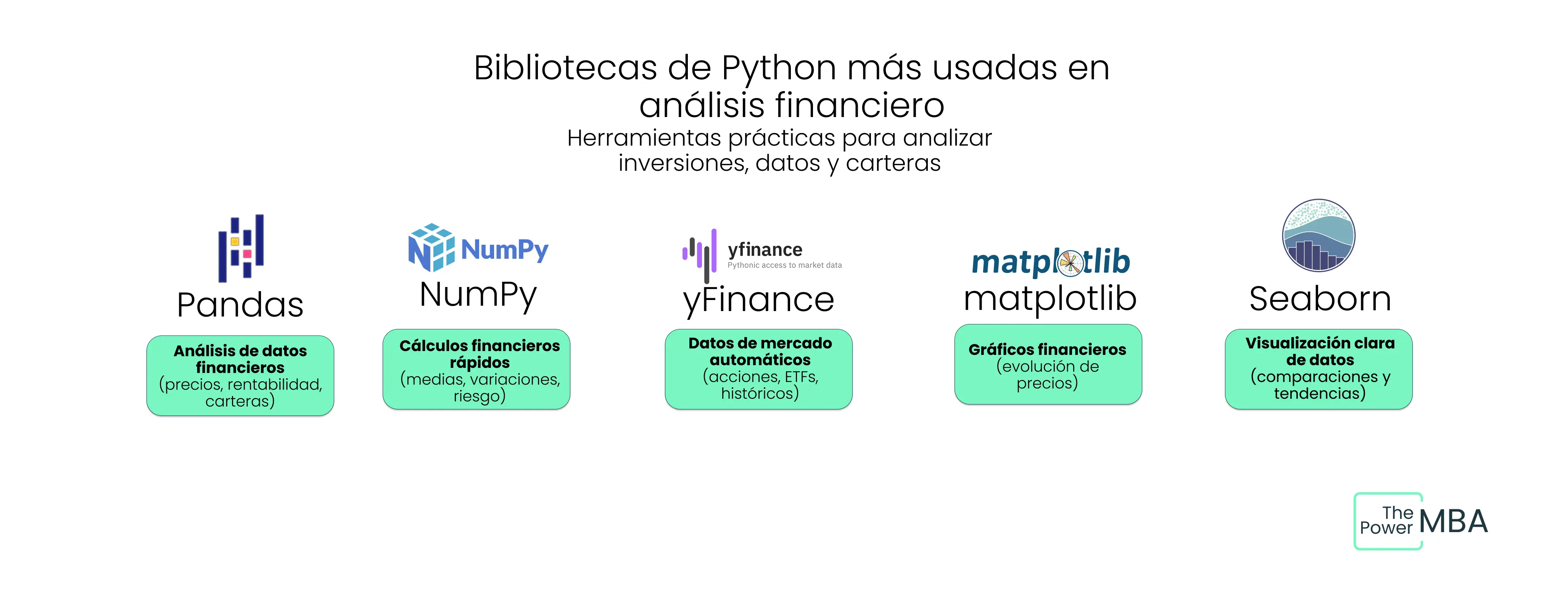 Python cuenta con muchas bibliotecas, pero para empezar en análisis financiero e investing no necesitas conocerlas todas. Con unas pocas puedes cubrir la mayoría de análisis habituales de un inversor.